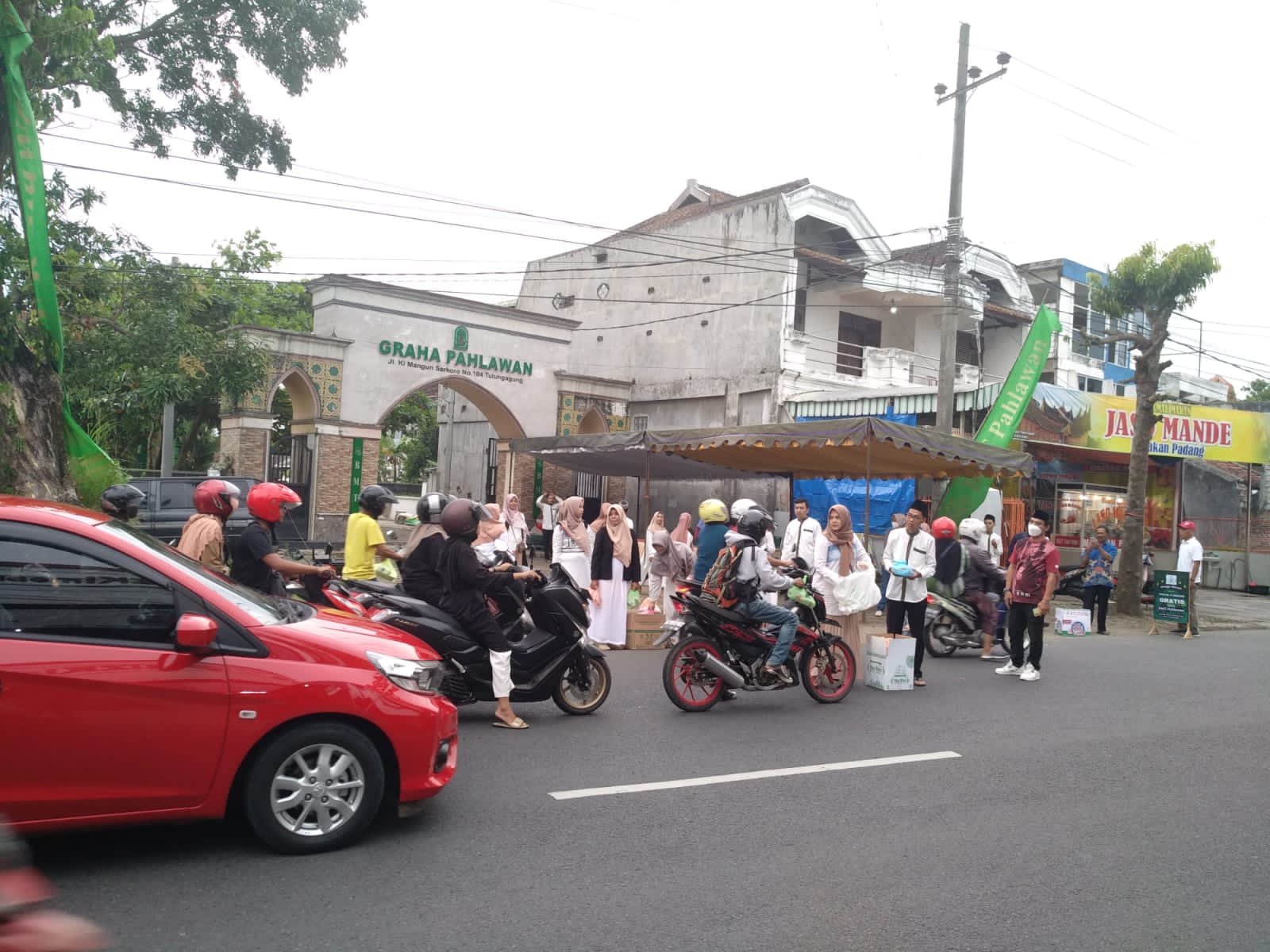 Tulungaung, (dNusa.id) – Jalan Ki mangunsarkoro tepatnya depan kantor BMT Pahlawan Tampak ramai. Ternyata disana sedang dilaksanakan pembagian takjil dan menu berbuka puasa. Tidak kurang dari 500 lebih paket menu berbuka puasa dibagiakan. Meskipun lalu lintas tampak sedikit macet namun masyarakat tampak senang dengan kegiatan yang dilakukan sore itu. Minggu(16/04/2023).