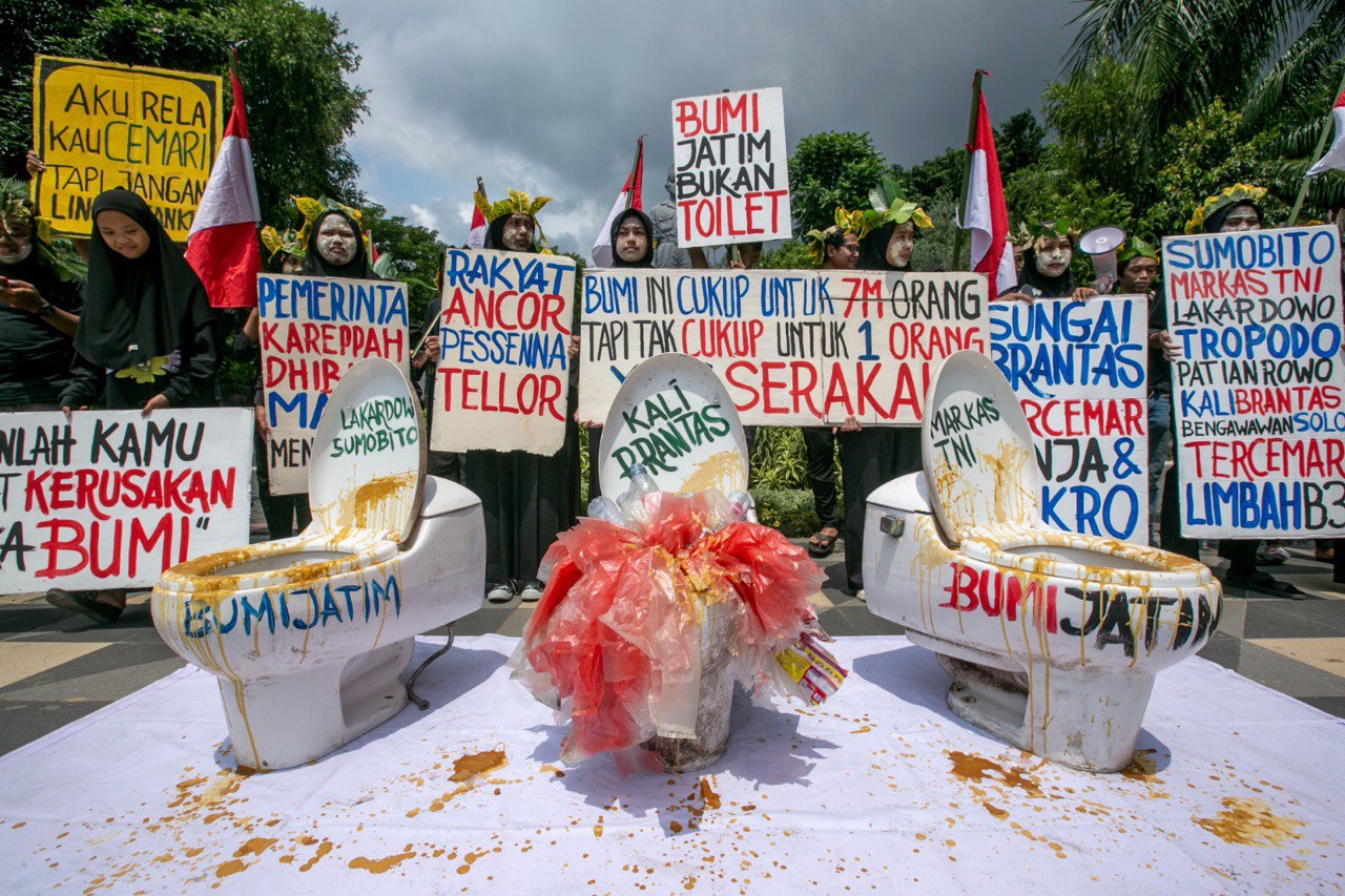5. Kelima, mendorong penegakan hukum dan transparansi penyelesaian kasus – kasus pencemaran lingkungan di Jawa Timur.