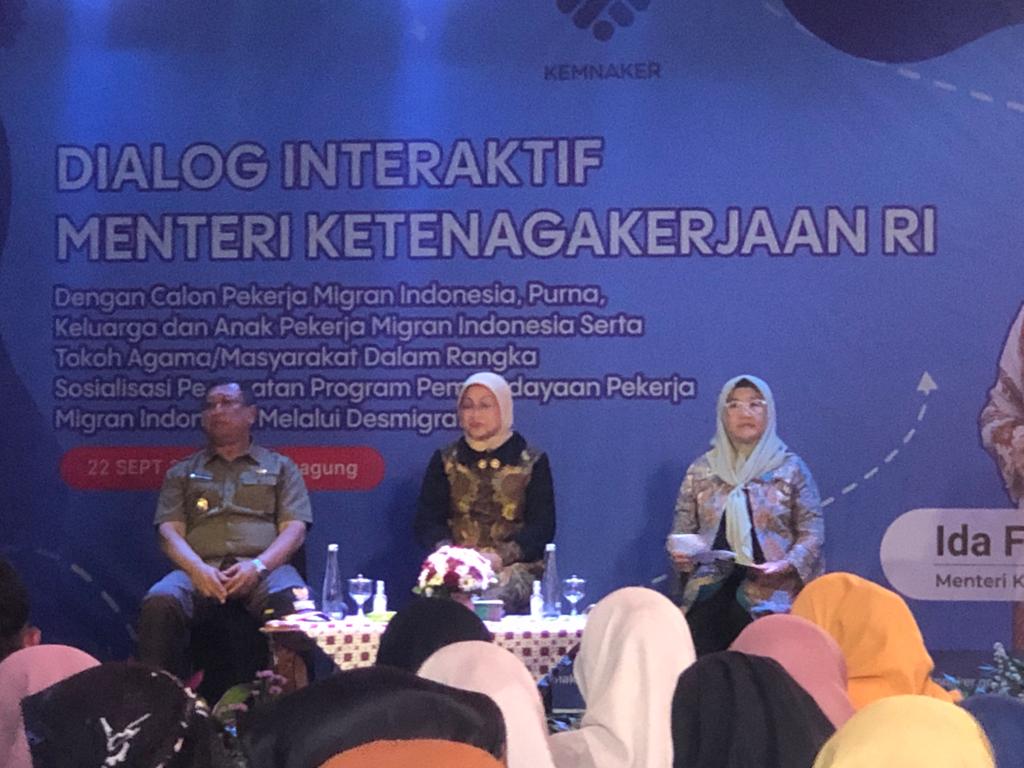 Menteri Ketenagakerjaan RI Ida Fauziah menjelaskan, agenda kali ini yakni dialog interaktif terkait Pekerja Migran Indonesia, untuk total keseluruhan kegiatan seperti ini dilakukan sebanyak 500 desa di Indonesia untuk Tulungagung sendiri ada 6 Desa yang menjadi pilot projek dalam penanganan PMI dan juga menjadi desa yang paling banyak menyumbang PMI ke luar negeri.