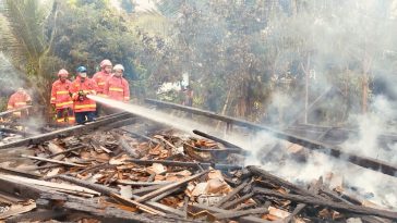 Jika dilihat bahan bangunan terbuat dari galvalum dan seng, meski demikian dengan api yang besar bisa membuat dua bahan tersebut hingga penyok.