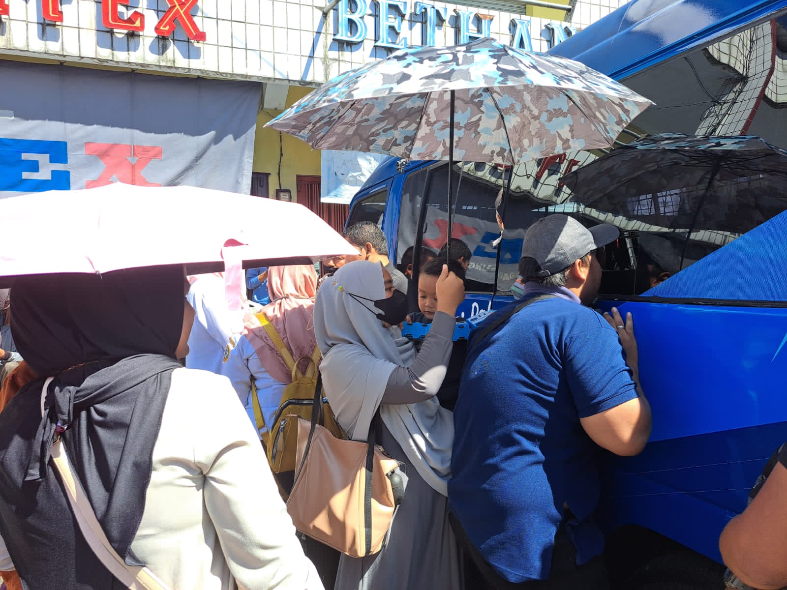 Dia hanya kebetulan lewat dan melihat keramaian di samping mobil mini bus warna biru yang ternyata penukaran uang dari Bank Indonesia.