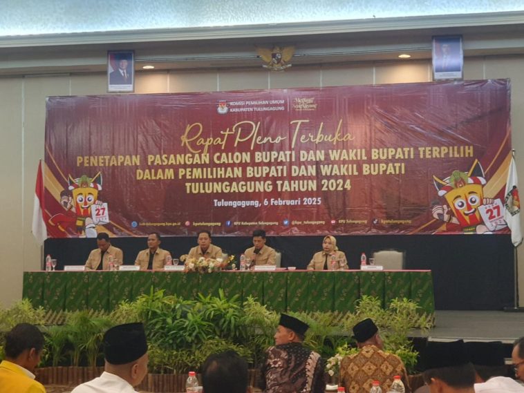 Ketua KPU Tulungagung, Moh. Lutfi Burhani mengatakan, pihaknya sudah selesai melakukan rapat pleno terbuka penetapan paslon Bupati dan Wakil Bupati terpilih. Rapat pleno ini dilakukan setelah Mahkamah Konstitusi (MK) membatalkan gugatan sengketa hasil Pilkada 2024 di Tulungagung oleh paslon 03.
