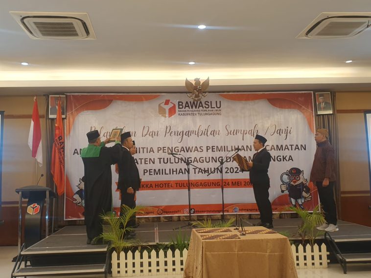 Tulungagung, (dNusa.id) – Pj Bupati Tulungagung Heru Suseno melantik Panitia Pengawas Kecamatan (Panwascam) se-Kabupaten Tulungagung, di Hotel Lojikka pada Jum’at, (24/5/2024).