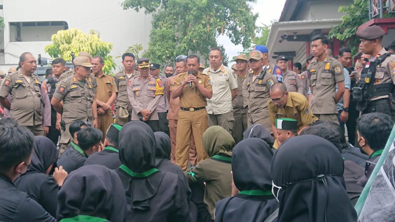 Tulungagung, (dNusa.id ) – Sekda Tulungagung Tri Hariadi menemui demonstran Himpunan Mahasiswa Islam (HMI) Cabang Tulungagung di depan Kantor Bupati Tulungagung, pada Selasa, (25/6/2024).
